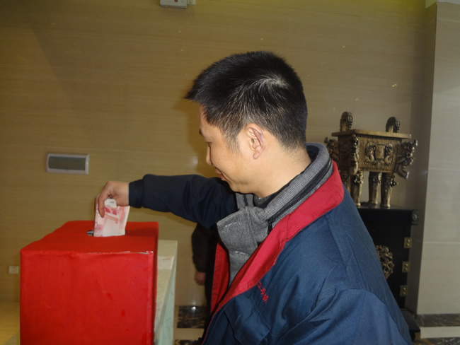 小張是本公司生產(chǎn)部員工,因小孩突發(fā)疾病而入院,昂貴的手術(shù)費和醫(yī)藥費對本來就不富裕的一家無疑是雪上加霜。得知這一情況后,公司高層管理立即發(fā)出獻愛心捐款倡議書,得到了廣大員工的熱烈響應,公司領(lǐng)導率先垂范,帶頭捐款,大家都主動從自己的工資里拿出二百、一百、五十、二十.....沒有儀式,沒有渲染,卻有一股暖流在恒立公司內(nèi)涓涓流淌。短短的一個小時,共募集捐款1萬2千余元,更為感人的是,來公司提貨的郭師傅聽說小張的情況之后,當即拿出了50元,主動獻上自己的一份愛心。次日早上公司行政部將所有捐款及時遞交到了小張家人的手中。