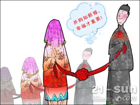“一對(duì)好青年,戀愛結(jié)婚了!”在濰柴動(dòng)力并購(gòu)德國(guó)凱傲集團(tuán)新聞發(fā)布會(huì)上,譚旭光以此幽默的語言描述這一歷史性重大事件。相比傳統(tǒng)印象中商場(chǎng)征戰(zhàn)的冷漠無情,這一比喻無疑多了些許溫情,也形象地說明了并購(gòu)的原則――各取所需,雙方共贏。但中國(guó)工程機(jī)械商貿(mào)網(wǎng)記者認(rèn)為,還需引用另一句話加以警醒:婚姻是愛情的墳?zāi)埂TS多看似美滿的結(jié)合,經(jīng)過無數(shù)雞毛蒜皮的糾纏后往往遺失掉最初的美好,在“相看兩相厭”之后,最終分道揚(yáng)鑣。